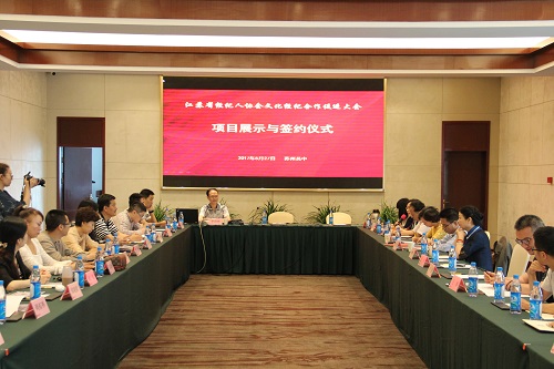 “合作項目宣推圓桌會議”于 527日下午如期舉行,參會的文化主管部門、文化企業負責人、文藝家代表積極對合作項目進行宣推。會上,江蘇省文交所、徐州市文化產業協會、蘇州蘇豪文化創意園、蘇州工藝絲綢、南京遠宏公關非遺項目、南京蒼潤齋、蘇州向紅繡府等10家單位現場簽約6個合作項目,另外淮安市清江浦區文廣新局、鎮江文化市場行業協會、江蘇盛世堂文化、南京深博視覺文化等6家單位達成8個戰略合作、人才培養等項目合作意向。